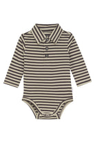 Boys' bodysuit Spur from Noppies Baby, made from GOTS-certified cotton (CU1392474). The bodysuit features a striped pattern, long sleeves, a collar with a button closure, and adjustable snap buttons. The adjustable snap buttons ensure the bodysuit lasts longer. It also has the Soft Feel label, meaning the fabric feels extra soft on your baby's skin. With GOTS cotton, you're making the best choice for yourself, your child, and the world. From the environmentally conscious way the cotton is produced to a ban on child labor, everything meets high standards. And it’s truly a pleasure to wear!