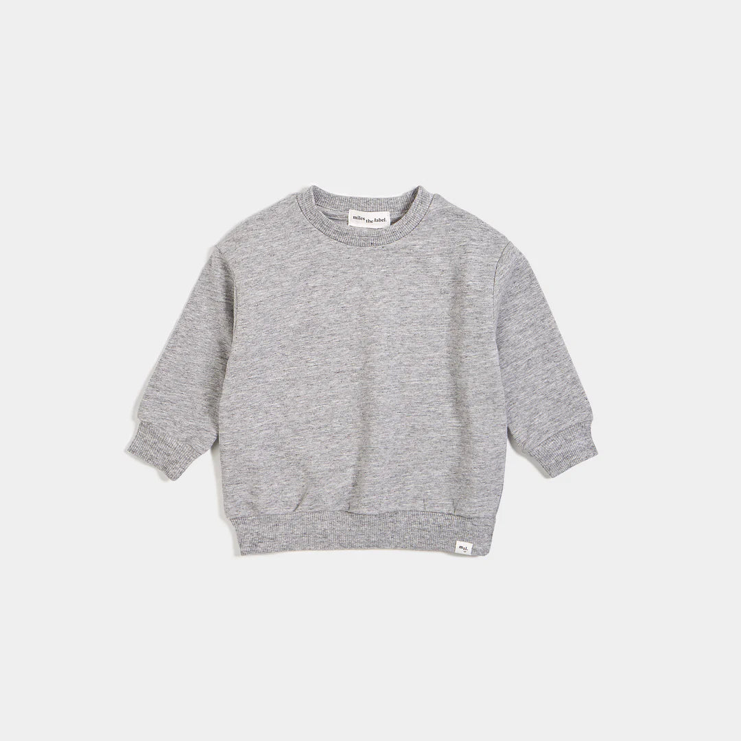The Miles Basic Sweater in heather grey is easy to wear and pull on over rompers or joggers. Available in a whole range of seasonal colors, the sweaters and matching pieces can be combined to create an endless selection of comfy outfit combos. For your littlest ones, the back of the sweater is fitted with a placket and buttons for easy over-the-head changes.