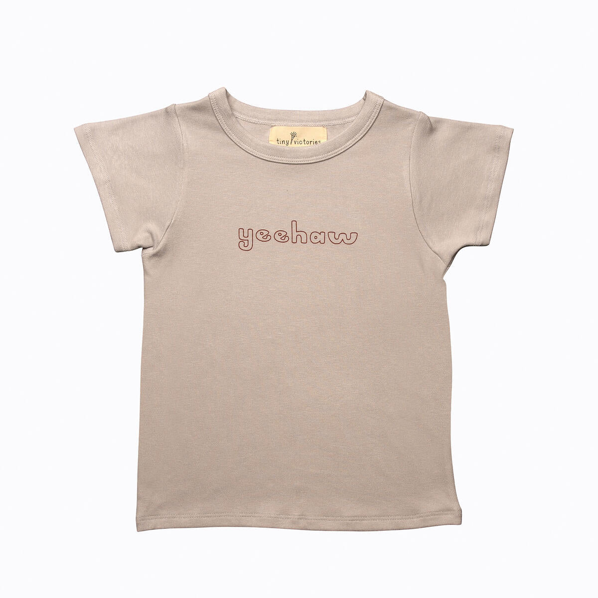 Adorable graphic tee, perfect for Stampede and rodeo season! Tee in photo appears more taupe but shit is light grey