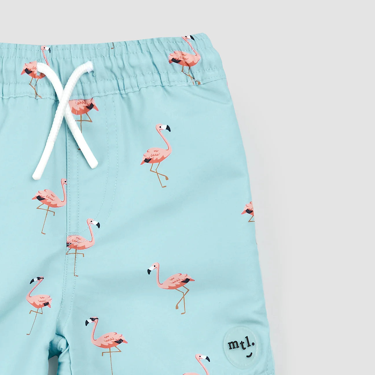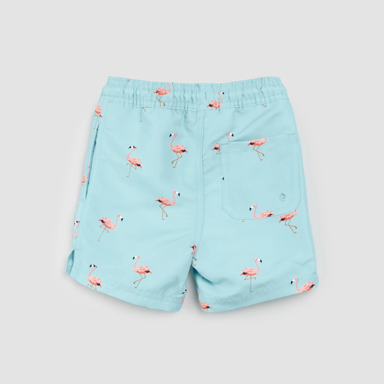 Nothing screams "fun in the sun" quite like a Flamingo print. These blue-as-the-sky swim trunks add even more playfulness to the family vacation while still being super comfortable for your little dude. With an elasticated waistband and a drawstring tie, the trunks have a secure fit that lets him dive, flip and cannonball his way into the pool. There's built-in UPF50+ sun protection, but for extra coverage, try our short-sleeved rash guards from the same range.