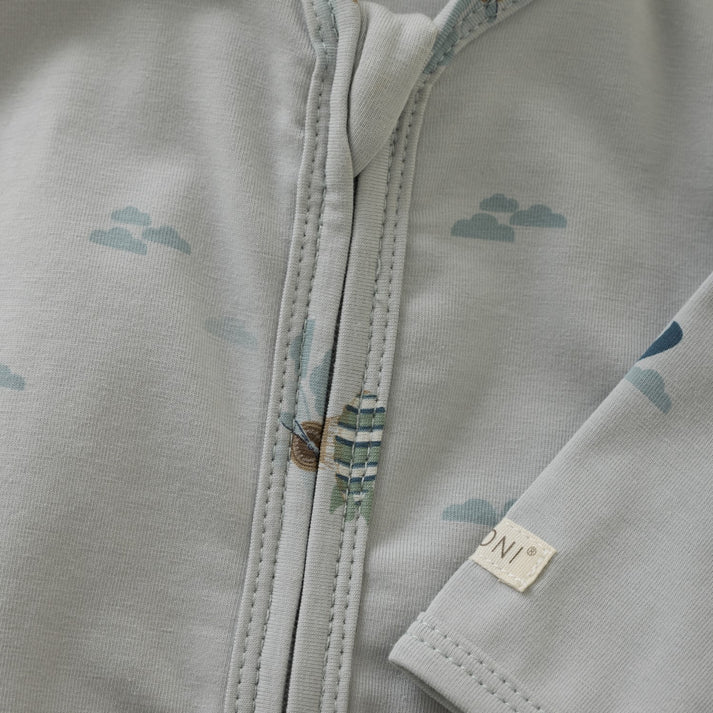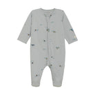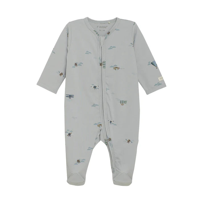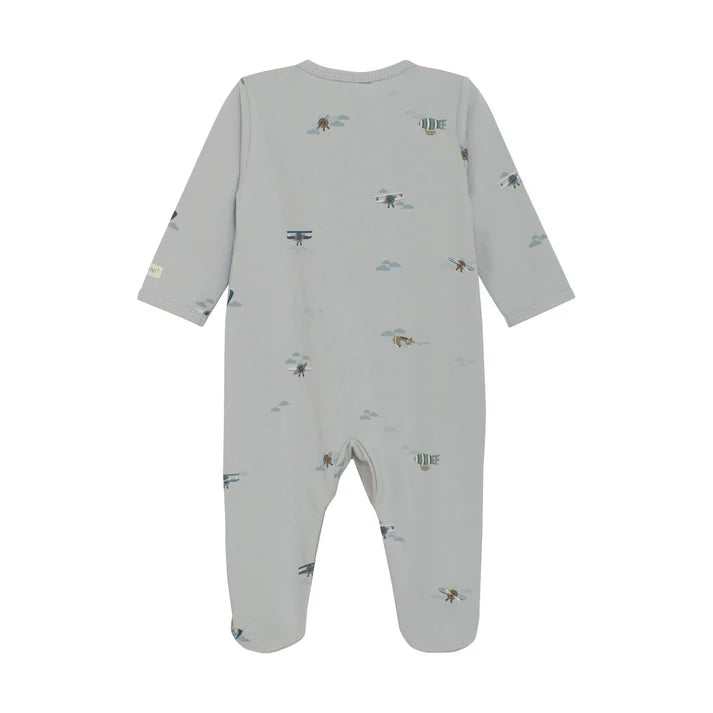 Adorable airplane print on light blue fabric. Perfect footie for little boys!