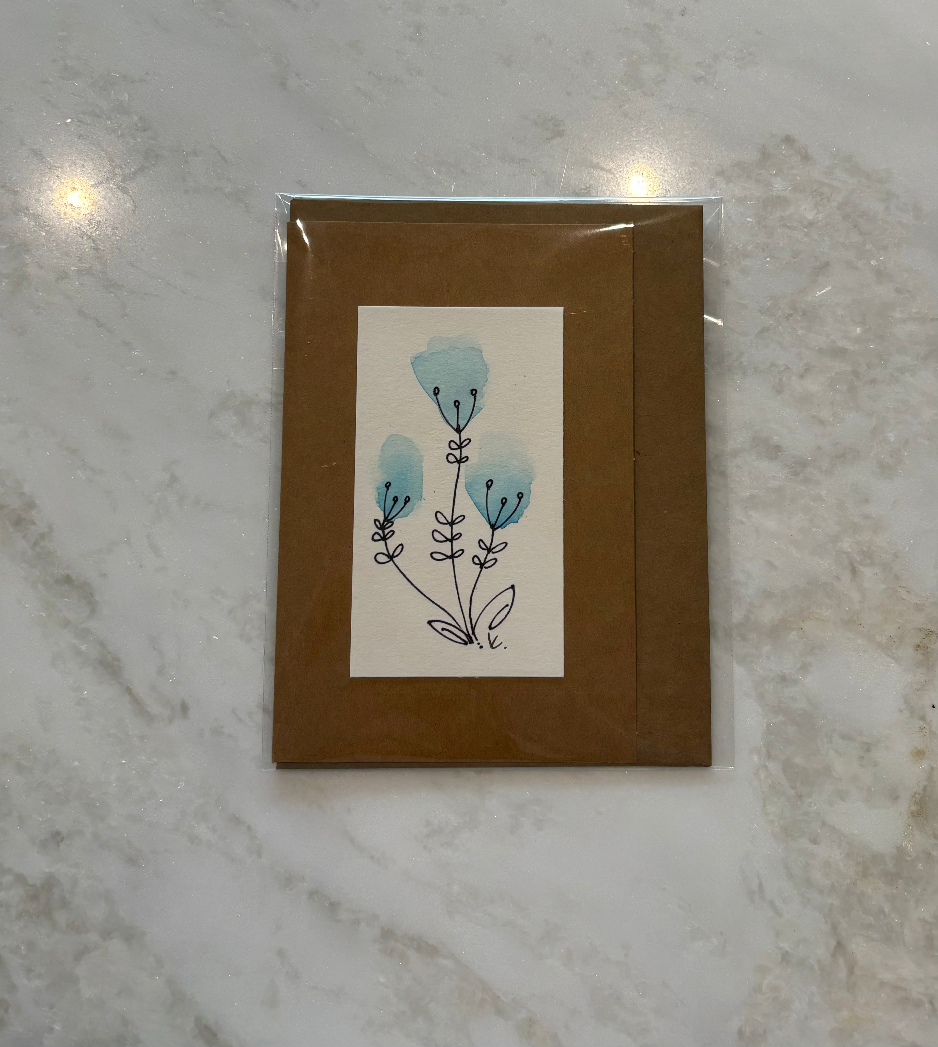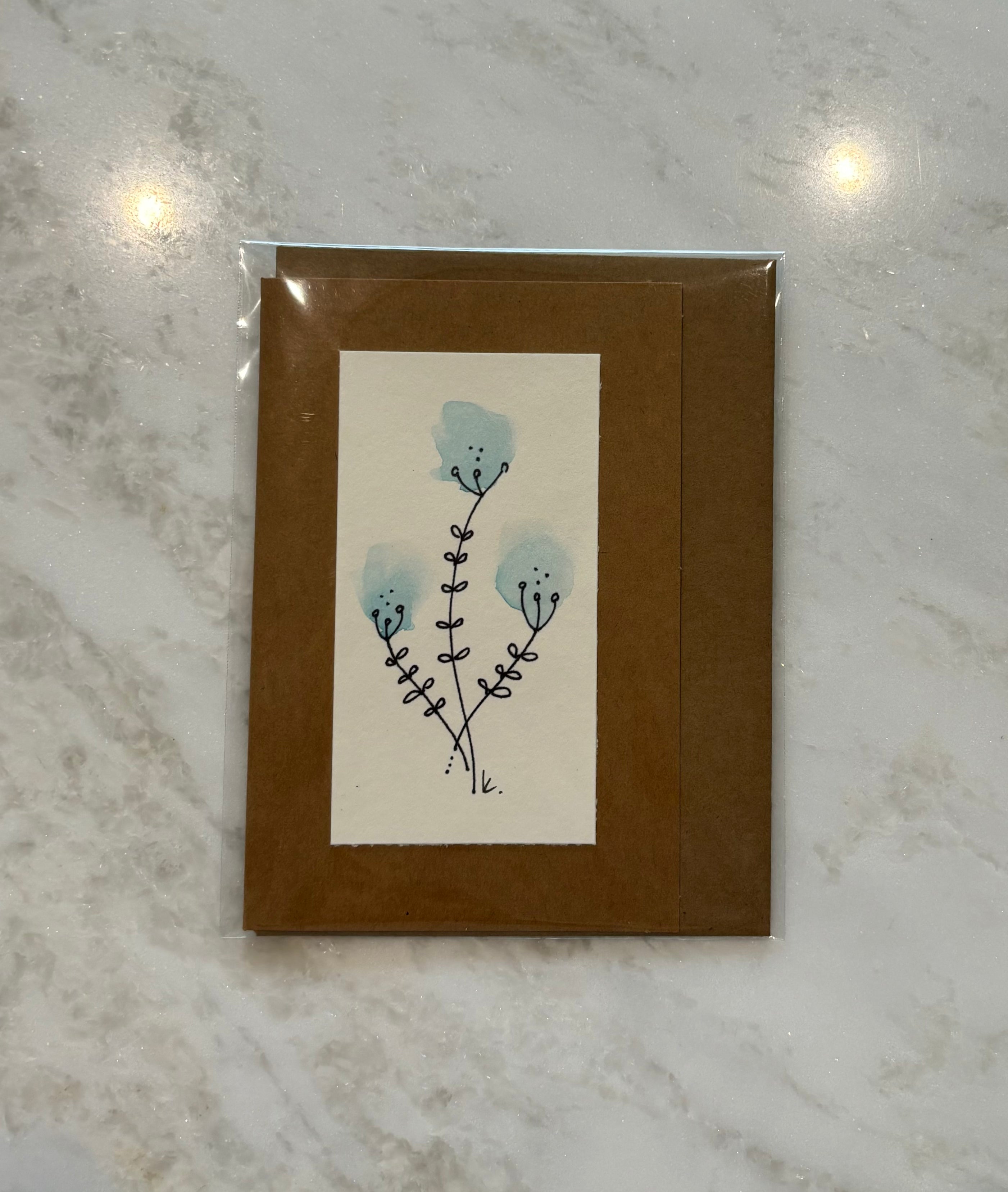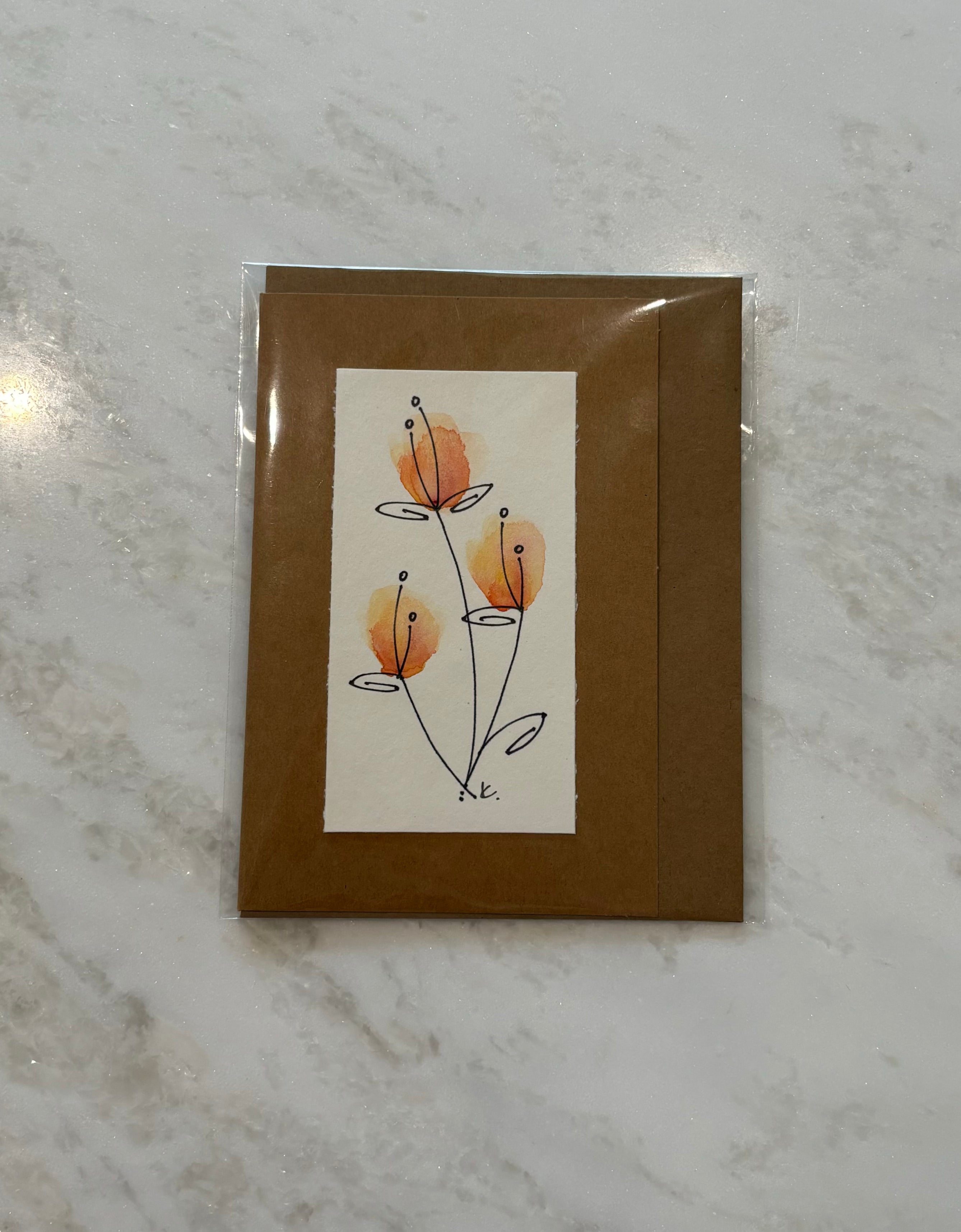 Hand painted floral water colour cards. Designed and painted by local Calgary artist. Each card is unique and one of a kind, comes with envelope