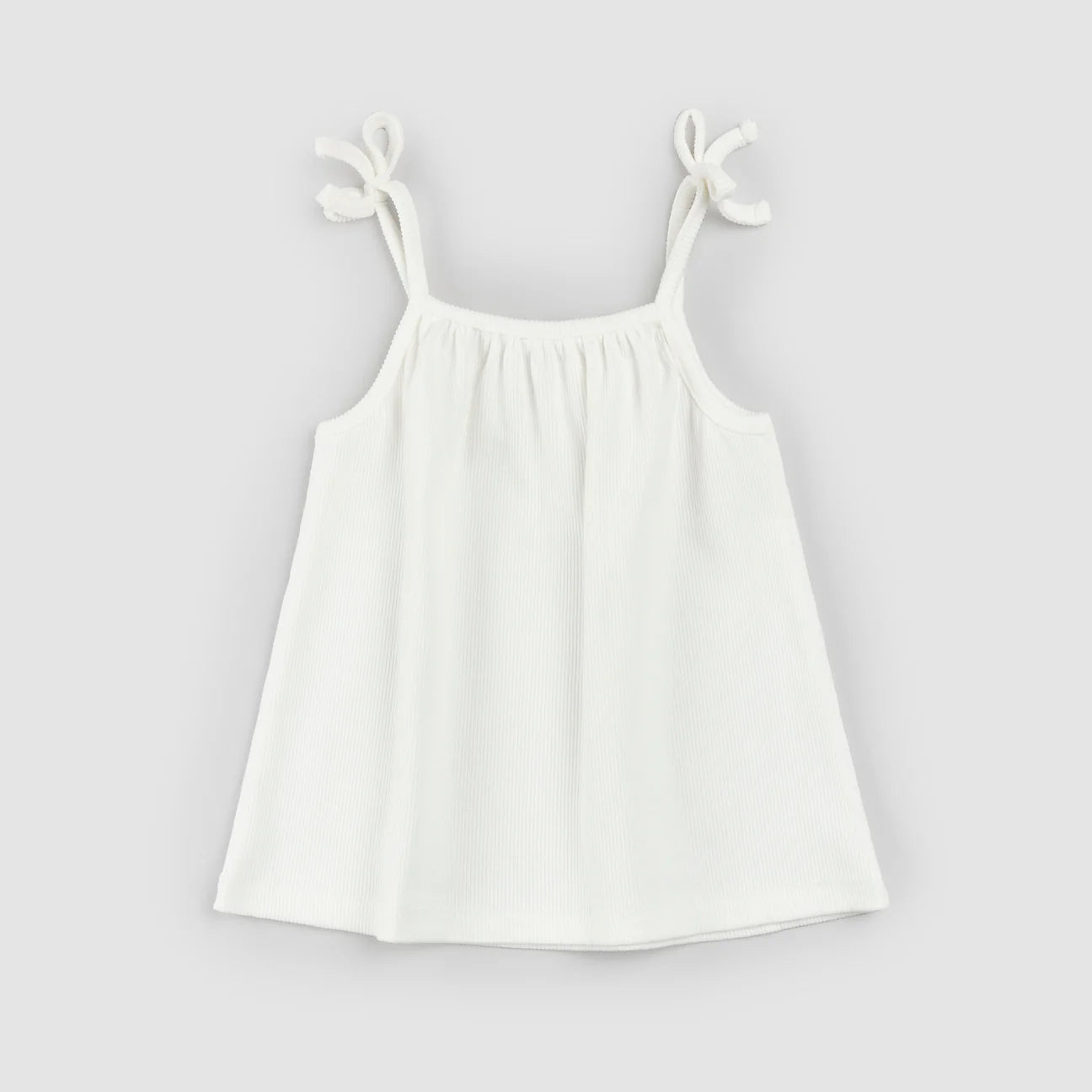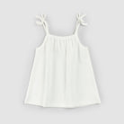 This simple vest top has spaghetti straps and a loose fit for an easy breezy summer’s day choice. The straps are finished with pretty bows at the top to provide a style that can be dressed up or down. Made from a light and breathable organically grown cotton, the top is perfect for keeping cool on sunny days.