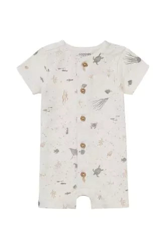 How lovely is this unisex playsuit from the Noppies Baby collection? The playsuit has an all-over print with all kinds of sea creatures, plus a pocket on the chest and short sleeves. With the buttons on the body and press studs at the bottom, the playsuit can be opened all the way. Very handy when changing your baby's clothes and nappies!