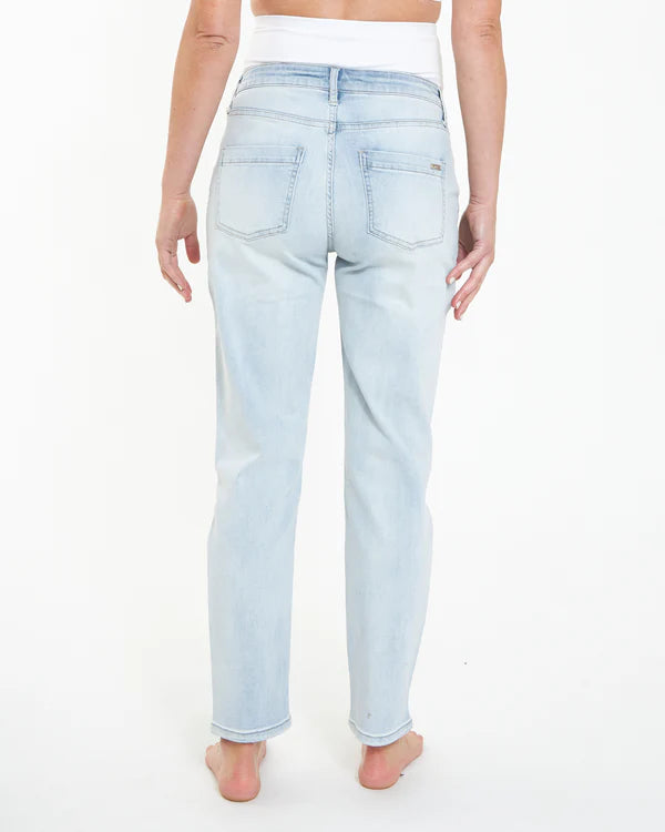 Meet the go-to everyday denim style, otherwise known as the Hunter Over Bump Jean. Made from a velvety-soft stretch denim, these classic fit jeans feature a flattering straight leg and comfy over-bump jersey knit waistband.
