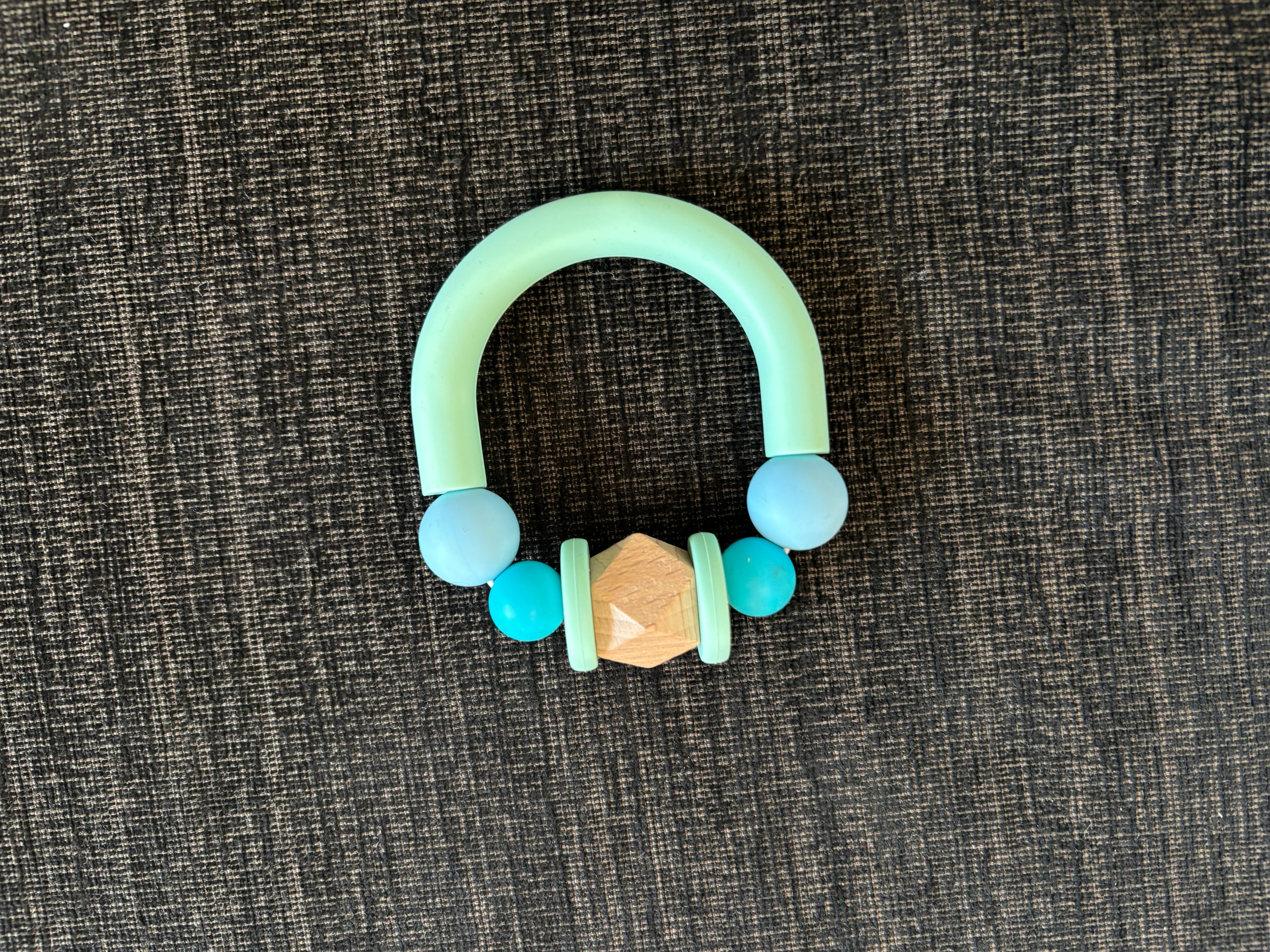 This teether is crafted from medical-grade silicone and natural wood, offering a safe and stylish solution for soothing your baby's gums. The smooth silicone provides gentle relief during teething, while the wooden accents add a touch of elegance and durability. Ideal for little hands to grasp and chew, this teether combines functionality with a chic design.