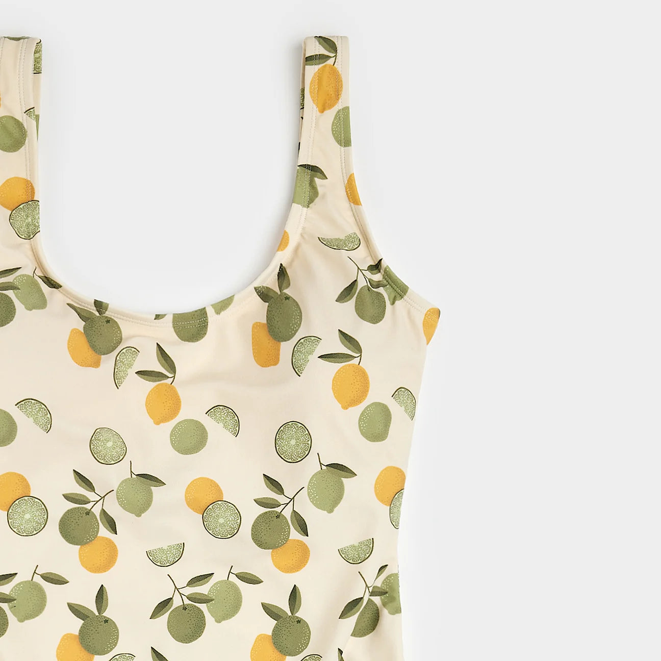 While playing in the water with the kids might feel second-nature for dad, mom may have a hard time feeling comfortable and confident at the pool or the beach. Our flattering swimsuits are designed to push insecurities away so you can feel your best this summer. With a deep plunging neckline, this bathing suit has a supportive fit which hugs your figure in all the right places – leaving you free to run, splash and have care-free fun. Featuring our Lemon & Limes print, this fresh one-piece coordinates perfectly with swimwear available for the whole family.