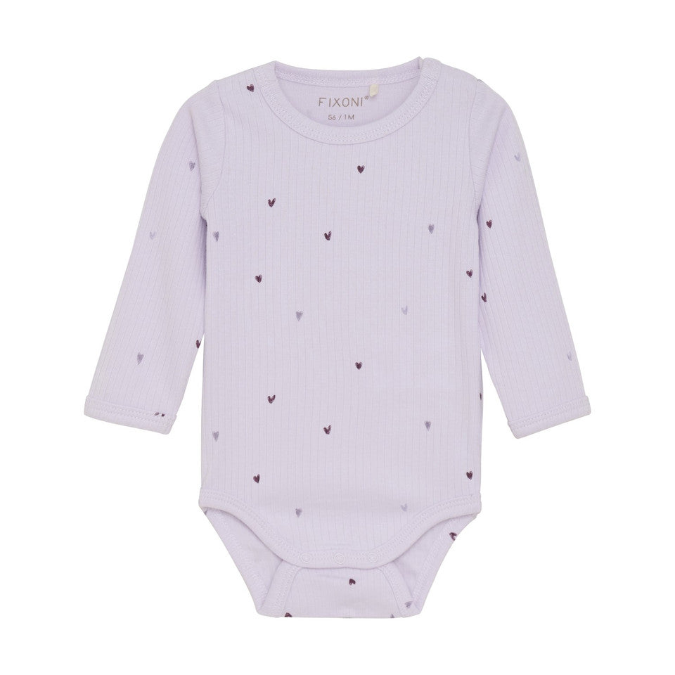 Body from FIXONI with all-over-print. The body opens with practical snaps on the shoulder and between the legs, so it can be put on and taken off easily. The body is made of a soft rib quality that feels soft and comfortable against the skin.